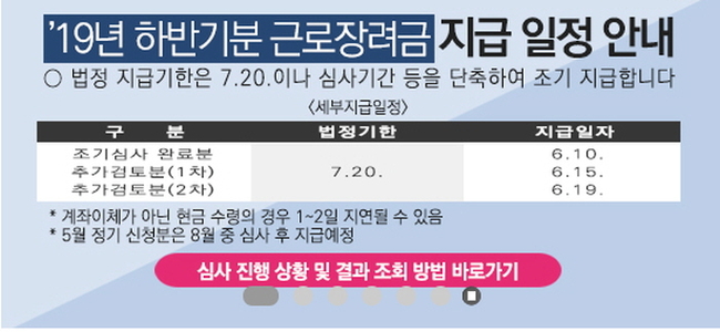 2019년 하반기 근로소득 근로장려금이 10일부터 지급된다고 국세청이 밝혔다.