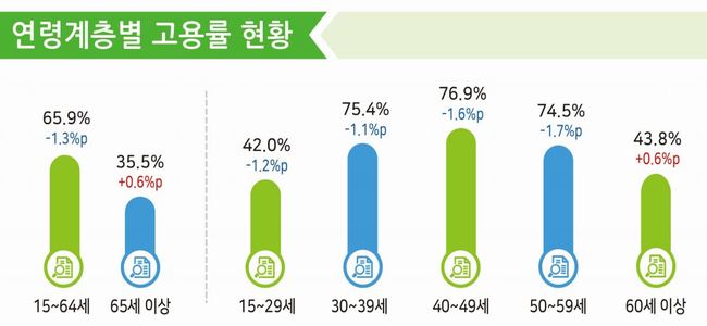 통계청 관계자는 "6월 고용률 하락의 상당 부분을 40대 고용률 변화가 설명한다"며 "도·소매업과 제조업 업황이 함께 나빠지며 40대 고용률이 하락했다"고 설명했다.